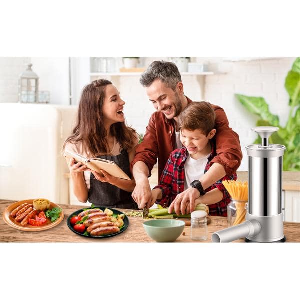 Изработена от хранителна неръждаема стомана SUS304 и PP материал, нашата машина за приготвяне на наденички се отличава с издръжливост и здравина, като гарантира дълготрайна употреба.