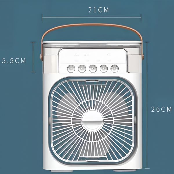 С резервоар за вода с вместимост 600 ml този преносим климатик осигурява продължително охлаждане и овлажняване, перфектно за часове употреба без често зареждане.