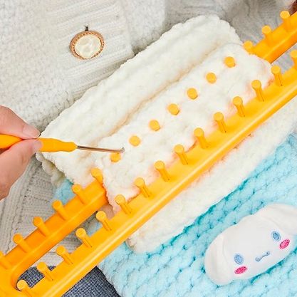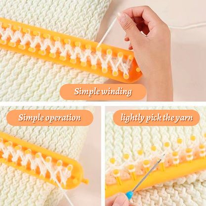 Този инструмент е изключително лесен за използване – всичко, което трябва да направите, е да прекарате преждата по него и да я увиете около шипчетата. Когато приключите, просто извадете преждата от инструмента!
