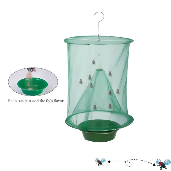 INSECTA е изработена така, че да издържи дълго с лека, устойчива на ръжда тел и найлонова мрежа, свободна от износване и разкъсване. Тази издръжлива конструкция гарантира, че капанът може да издържи на различни външни условия, което го прави надеждно и дългосрочно решение за контрол на мухите.