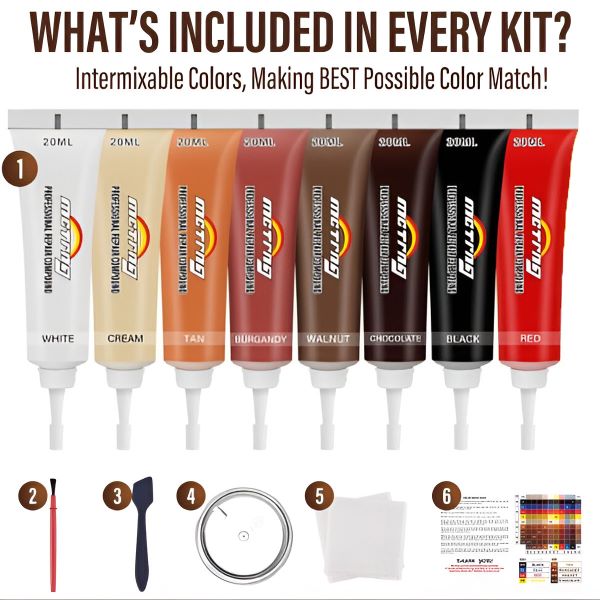 Лесно отстраняване на драскотини от домашни любимци, разрези, изгаряния, износване, избледняване и пукнатини по кожени повърхности.