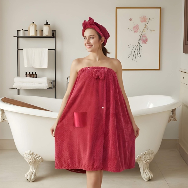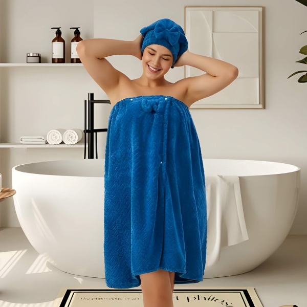 Регулируема кърпа за баня с шапка за сушене на коса 2 в 1 | LUXROBA