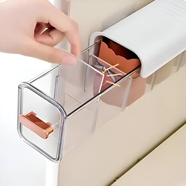 Съхранявайте подправки, прибори или малки инструменти в тези прозрачни органайзери със сигурни капаци, които предпазват кухненските ви принадлежности от прах. Монтирайте ги във вътрешността на шкафовете или на стените за удобен достъп, което прави приготвянето на храната по-бързо и ефективно.