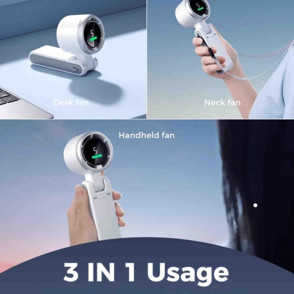 Компактен с размери 179 x 60 x 55 мм и тежащ 153 г, този сгъваем вентилатор се побира в чантата ви или дори в джоба ви—освен това, той се сгъва аккуратно за съхранение.
