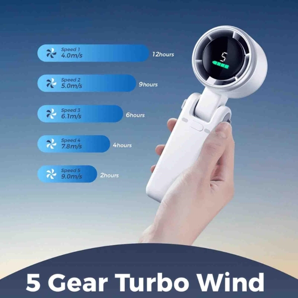 С 1800mAh презареждаща се батерия и силна скорост на вятъра, този турбо вентилатор надминава основните модели.