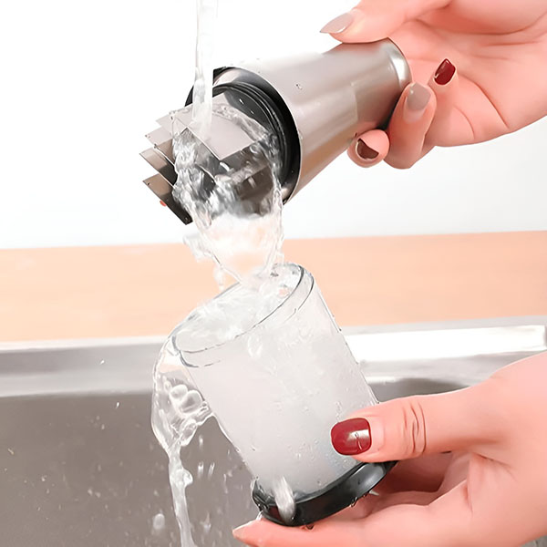 Забравете за търкането! Просто отделете частите и ги изплакнете под вода – почистването става за секунди. Перфектен за заети кухни, къмпингари и всеки, който обича удобството.