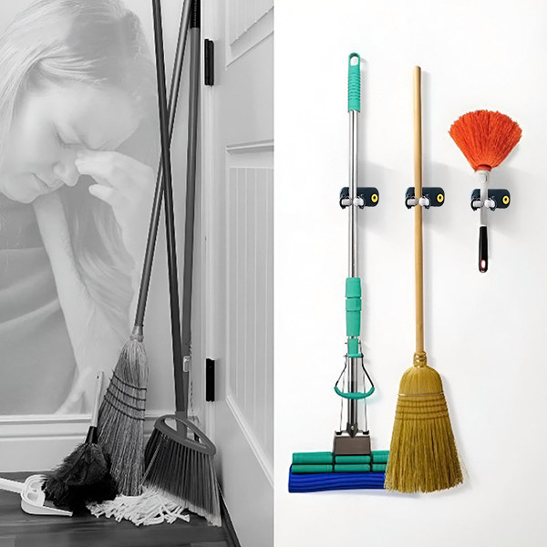 🧹 Поддържайте пространството си чисто и подредено с нашия комплект от 3 универсални държача! Перфектни за организиране на мопове, метли и други в дома, гаража или градината. 🚪🧺